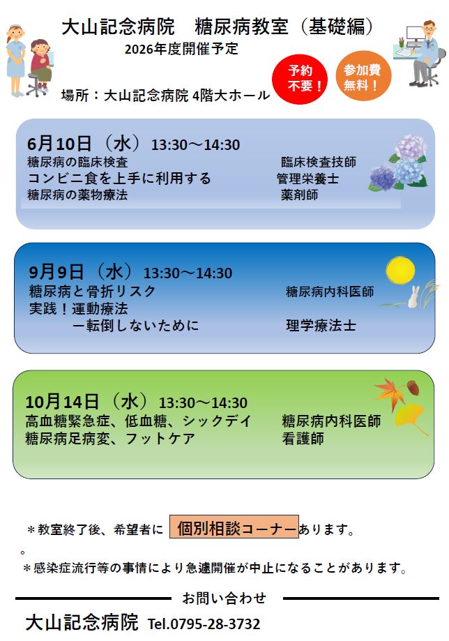 2026年度糖尿病教室開催のお知らせ | お知らせ | 大山記念病院